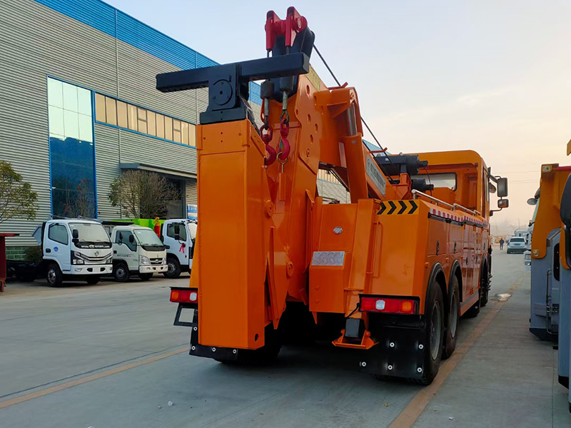 陜汽前四后八一拖一,國六排放,黃色標準駕駛室, 400L鋁合金油箱、中控鎖,濰柴400馬力發動機,12檔變速箱 后橋:MAN16T 雙級,軸距:1800+3975+1400,車架:850×300(8+5),輪胎:12.00R20-18PR。 30噸連體式上裝,進口閥,2個15噸液壓絞盤,三節式伸縮型后托臂,二節式六邊形吊臂,分體式工具箱,雙側聯動操作裝置,配后工作燈,肆套鋼叉一套拖叉,一套鋼板吊耳拖叉,一套抱胎裝置,**氣管總成一套,捆綁鏈條!帶無線遙控。