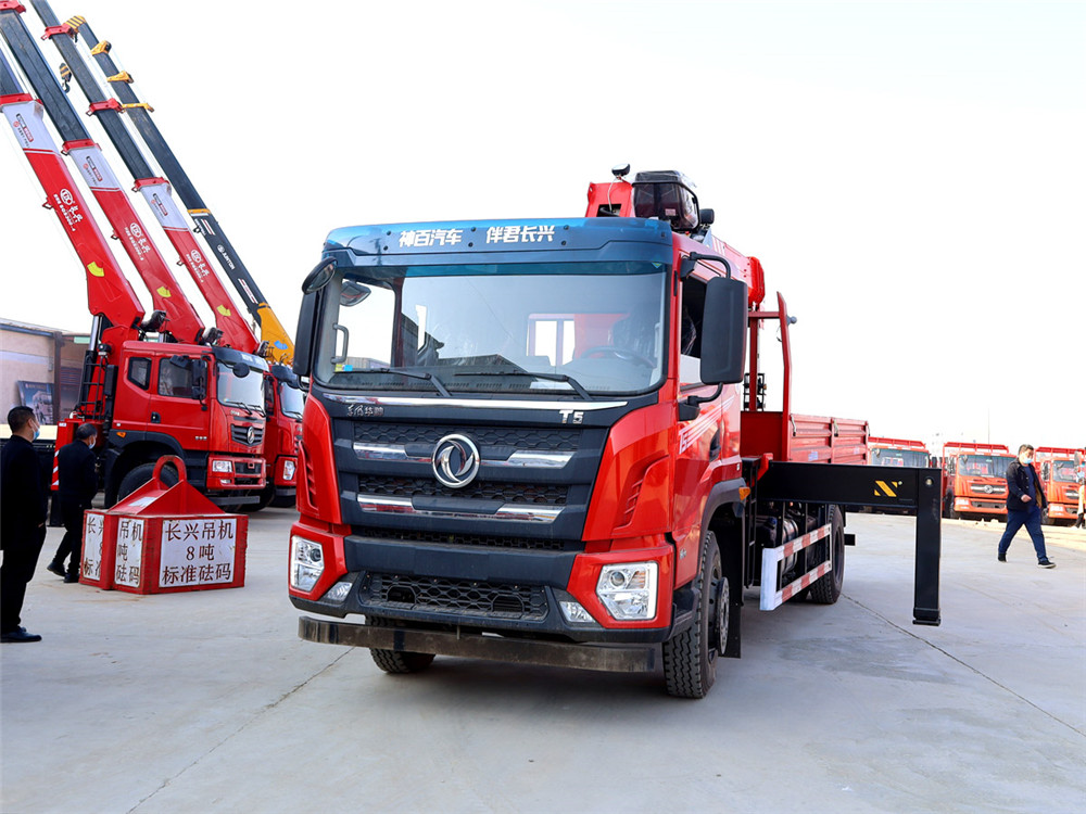 東風華神T5排半單橋,上裝三一8噸直臂式吊機采用T702G駕駛室,玉柴200馬力國六發動機,法士特8檔變速箱,前橋5.5T,后橋10T,300mm直通三層大梁,10.00R20鋼絲胎,軸距5100,機械座椅,遙控中控,多鎖合一,遮陽罩,行駛記錄儀、多功能方向盤,、帶空調;鋁合金油箱鐵儲氣筒;帶遠程油門、遠程啟停;