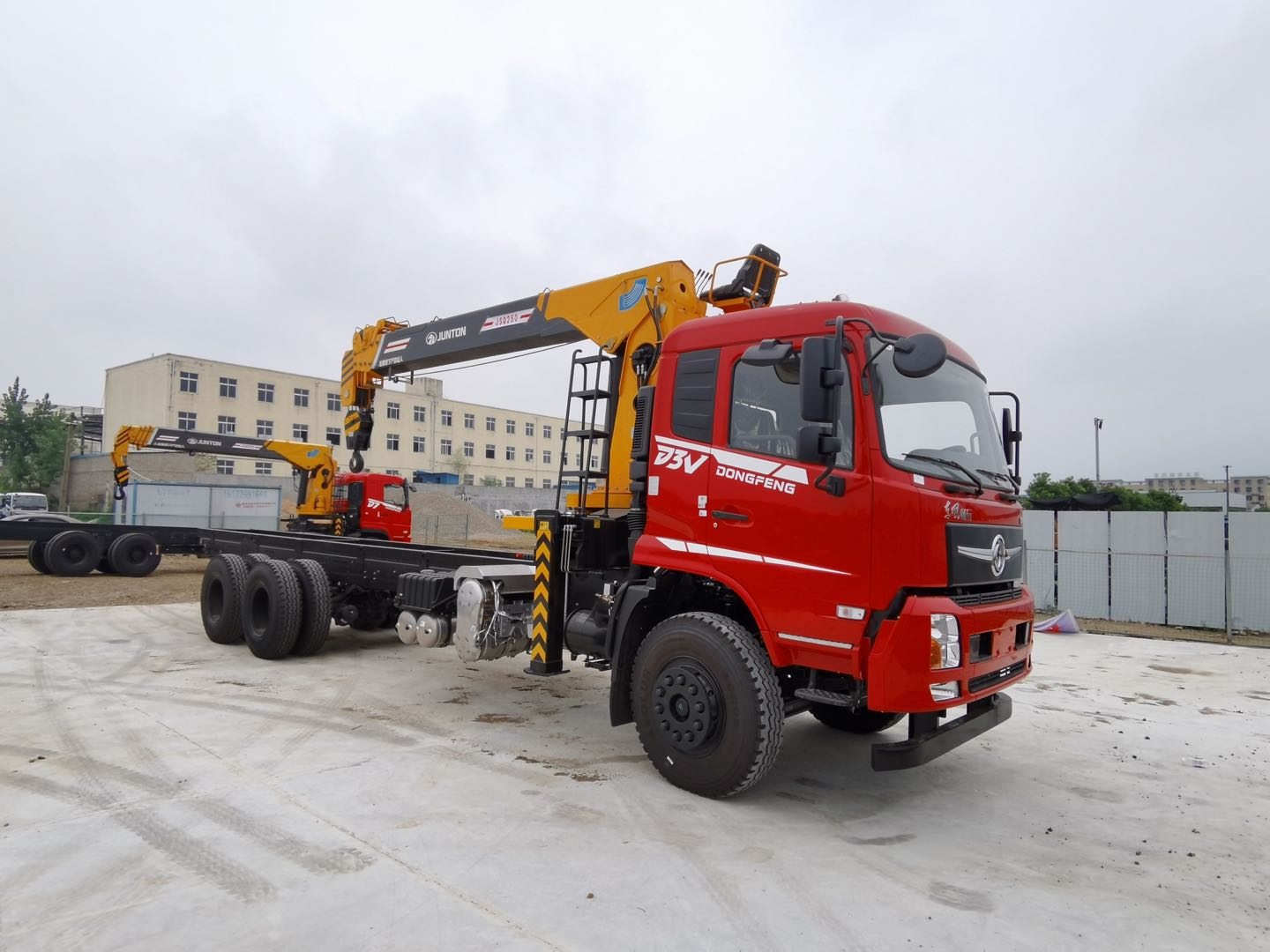 上裝駿通12噸5節臂吊機,舉升高度20.6米,工作半徑18.3米,二節臂單出,雙油缸伸縮,柱塞泵,行星減速機,超長跨距前支腿5.8米,貨箱尺寸:8500×2450×55