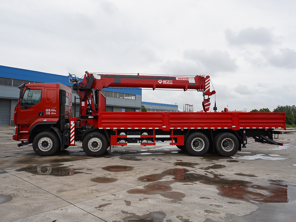 上裝新飛工16噸五節直臂吊機,二節臂單出,舉升高度21.6米,工作半徑19.6米。全回轉,帶副鉤,雙級缸,雙節前支腿。上操作。